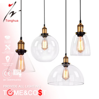 בציר אמריקאי כפרי זכוכית שקוף אהיל זכוכית עם ראש מנורת מתכת קישוט תליון אור למסעדה